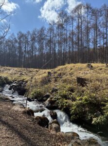 雪解けの水も加わり、姫木平を流れる川はいつもより勢いよく流れています。